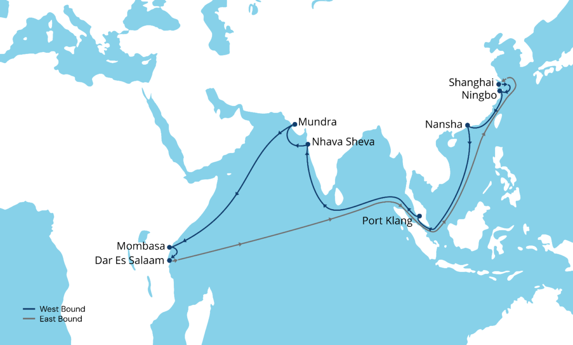 The carefully planned route offers a unique direct connection between the Far East and West India and East Africa, integrating cargo connections from East and South Asia to East Africa. This direct service reduces transit times and provides a reliable solution that caters to growing customer demands for comprehensive connectivity.