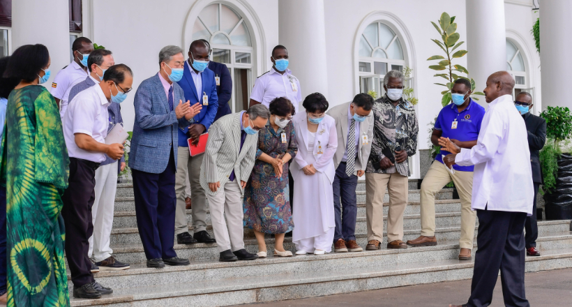 President Yoweri Museveni welcomed a delegation of businesspeople from South Korea led by Kwon Hurkkoo, Cho Shanghyu, and Kim Jinwook, all Directors of HINENI Ltd. HINENI Ltd is a registered company in Uganda, headquartered in Nakawuka, Entebbe Road.